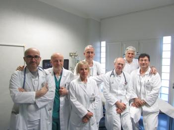 Nella foto l'équipe della Cardiologia che esegue la bipsia.