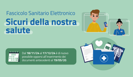 Torna la campagna di comunicazione sul Fascicolo Sanitario Elettronico 2.0 “Sicuri della nostra salute” per informare i cittadini che è stata aperta una nuova finestra temporale per opporsi al caricamento di dati e documenti sanitari generati da eventi clinici riferiti alle prestazioni erogate dal Servizio Sanitario Nazionale - SSN fino al 18 maggio 2020.