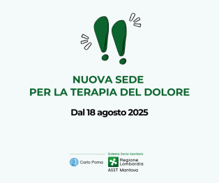 Dal 18 agosto, la struttura semplice di Terapia del Dolore sarà trasferita al 5° piano del Blocco A del presidio ospedaliero di Mantova. Per i pazienti deambulanti o in carrozzina sarà possibile accedere al reparto tramite gli ascensori 33 e 34 del Blocco D; per i pazienti trasportati con barella, invece, l'accesso potrà avvenire tramite gli ascensori 2 e 3 del Blocco A. Il percorso sarà opportunamente segnalato da apposita segnaletica.