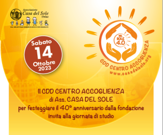 Il CDD CENTRO ACCOGLIENZA di Associazione CASA DEL SOLE vi invita alla giornata di studio per festeggiare il 40° anniversario dalla fondazione.