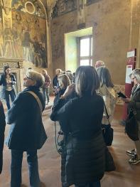 La visita a Palazzo Ducale è stata guidata dalla storica dell’arte del museo Giulia Marocchi, che ha accompagnato il gruppo in un affascinante viaggio alla scoperta di due capolavori dell’artista mantovano Andrea Mantegna: la Camera Picta (Camera degli sposi) e il San Sebastiano, accolto a Palazzo Ducale dal 12 aprile fino al 15 giugno come prestito della Galleria Giorgio Franchetti alla Ca’ d’Oro di Venezia.