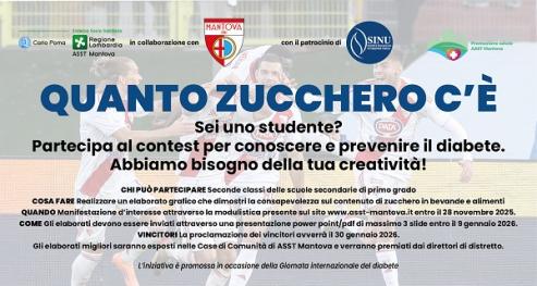 “Quanto zucchero c’è”: un contest rivolto agli studenti per costruire consapevolezza e salute promosso da Asst e Mantova 1911, con il patrocinio di SINU (Società Italiana di Nutrizione Umana), nell’ambito dei progetti di promozione della salute. Il diabete rappresenta una delle principali sfide di salute pubblica anche nella provincia di Mantova, con un carico crescente sia per i servizi sanitari sia per le famiglie.