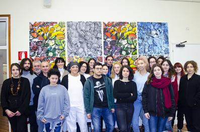Nella foto in alto alcune delle opere con i ragazzi, il personale della mensa, il professore del liceo Vincenzo Denti, il direttore medico del presidio di Mantova Consuelo Basili e la biologa nutrizionista Maria Chiara Bassi (ultima fila, secondo, terza e quarta da sinistra).