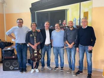 Camici bianchi di ASST in veste di musicisti alle Rems di Castiglione delle Stiviere. Il 24 ottobre i medici di ASST Mantova Paolo Pisi e Giorgio Perboni, con il loro gruppo Rochenrol Choolers, si sono esibiti davanti ai pazienti e agli operatori della struttura di Castiglione delle Stiviere. Alcuni dei ragazzi hanno recitato le loro poesie e letto i loro racconti fra una canzone l’altra. ll gruppo Rochenrol Choolers è composto da: Fabio Cangelosi (basso), Giuseppe Cangelosi (batteria), Giorgio Perboni (violino elettrico), Alvin Pianori (chitarra e voce) e Paolo Pisi (voce e tastiere).