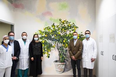 Il limone infatti, con i suoi frutti gialli, trasmette positività, luminosità e serenità. I suoi frutti sono associati al sole e alla vita. Le piante crescono in vasi: rappresentano la relazione di cura che l’uomo istaura con loro, come fa con le persone che ama. Chi entra, si ferma, catturato dall’opera e rimane sorpreso. “Finalmente si conclude questo progetto - afferma Gian Paolo Castelli, direttore della struttura – che era stato sospeso a causa del Covid. Siamo davvero contenti che questo locale sia stato riqualificato e che consenta all’equipe e ai famigliari di colloquiare in una zona rilassante e armonica.”