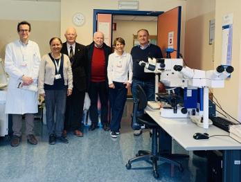 Nella foto da sinistra: il direttore del Servizio Trasfusionale Massimo Franchini, la process owner paziente nefropatico, diabetico, neurologico Rocio del Carmen Cabarcas Garcia, il consigliere della Fondazione Comunità Mantovana Onlus Luigi Gobio Casali, il presidente di MantovAIL Stefano Bulgarelli, il direttore delle Cure Palliative Laura Rigotti e il consigliere di MantovAIL Natalino Barbiani