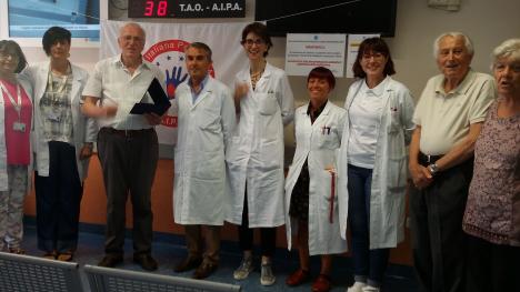 L'AIPA-Associazione italiana pazienti anticoagulati Mantova ha consegnato recentemente una targa al medico del Servizio Immunoematologia e Medicina Trasfusionale Carlo Bonfanti, attualmente in pensione, come riconoscimento alla carriera e alla professionalità dedicata per tanti anni ai pazienti anticoagulati di Mantova.
